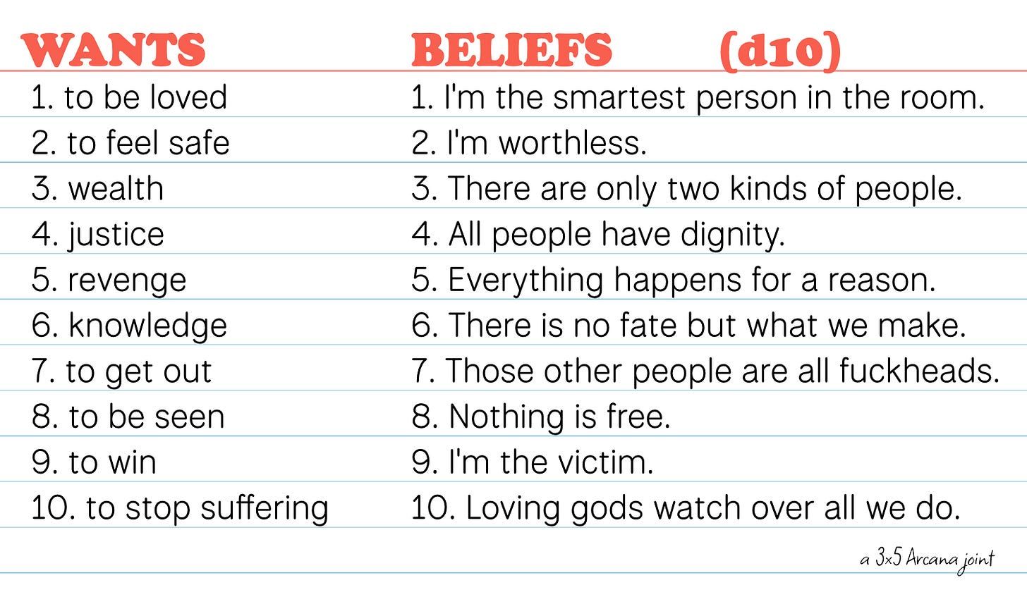 Today’s Index Card:D10 Wants and Beliefs